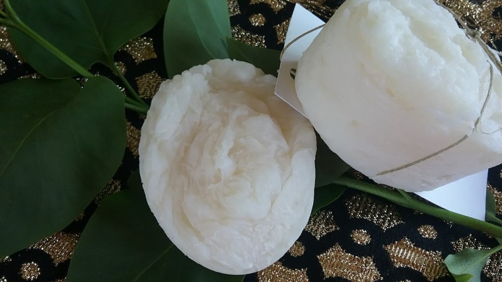 Ingredients: Coconut oil, water, palm & soybean oil, sodium hydroxide, castor oil, stearic acid, shea butter, essential oils.